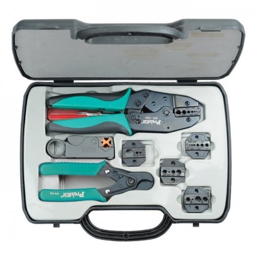 Набор обжимного инструмента Proskit 6PK-330K - набор инструментов для обжатия коаксиального кабеля, в пластиковом кейсе для транспортировки.