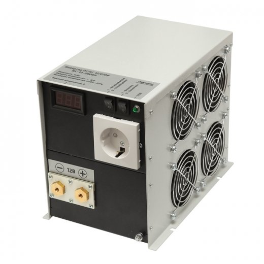 Инвертор ИС-12-3000У (преобразователь напряжения) преобразует постоянное напряжение аккумулятора 12 В в переменное синусоидальное напряжение 220 В и частотой 50 Гц. Качественные характеристики такого напряжения аналогичны характеристикам напряжения в бытовой сети.