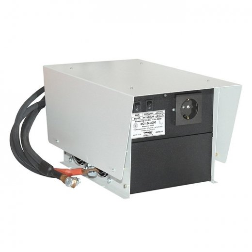Инвертор ИС1-24-4000Р (преобразователь напряжения) преобразует постоянное напряжение аккумулятора 24 В в переменное синусоидальное напряжение 220 В и частотой 50 Гц. Качественные характеристики такого напряжения аналогичны характеристикам напряжения в бытовой сети.