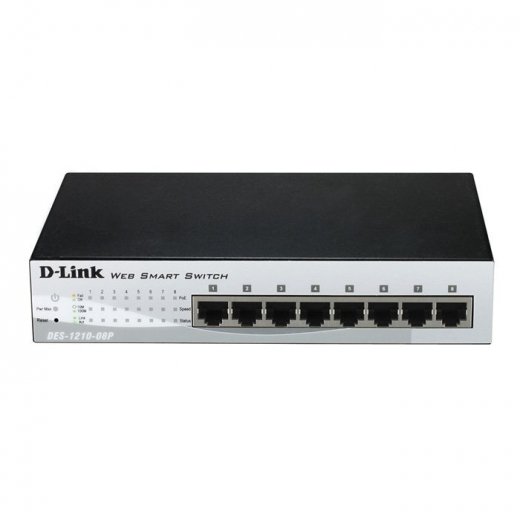D-link DES-1210-08P/A1 - настраиваемый коммутатор с 8 портами PoE 10/100Base-TX.