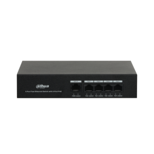 4-портовый неуправляемый коммутатор с РоЕ Порты: 4 RJ45 10/100Мбит/с (PoE/PoE+/Hi-PoE), 1 RJ45 10/100Мбит/с (uplink); мощность PoE: суммарно до 36Вт; передача до 250м; питание: 48~57В(DC)