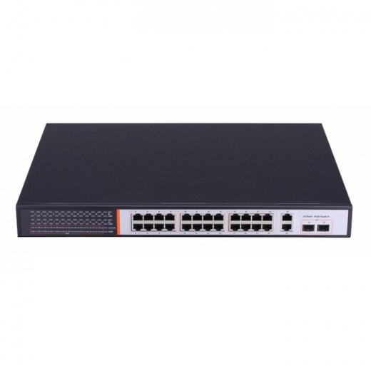 BSP POE-GIA-26 - коммутатор на 24 порта PoE. 24 РоЕ RJ-45 10/100M порта стандаров IEEE802.3af(15.4W на порт РоЕ) + 2 порта gigabit Combo + 2 SFP канала под оптику.