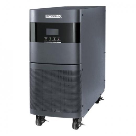 Stark Country 6000 online, 4А - источники бесперебойного питания, относятся к группе ИБП, работающих по принципу двойного преобразования. Поступающее на вход ИБП переменное сетевое напряжение (Uвх) преобразуется выпрямителем в постоянное, а затем с помощью инвертора снова в переменное. Аккумуляторные батареи, подключенные к точке соединения выпрямителя и инвертора, питают последний в аварийном режиме. Причем АКБ в данном ИБП включены в цепь постоянно.