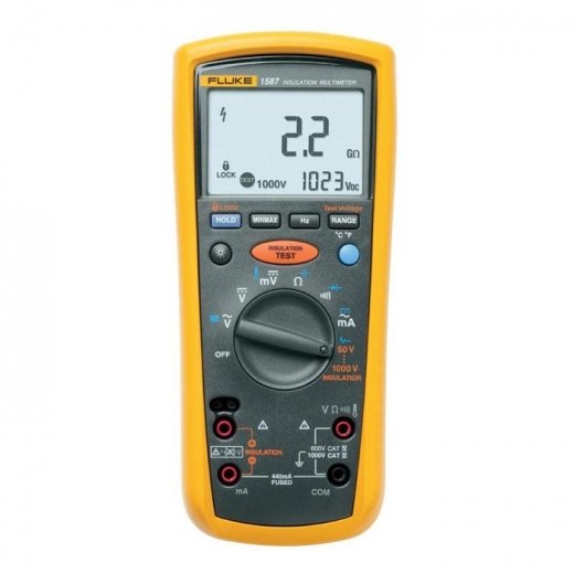Fluke 1587 - сочетает в себе два профессиональных цифровых прибора самого высокого уровня в одном корпусе: мультиметр и термометр. Портативный и надежный, он позволяет определять сопротивление изоляции до 2 ГОм, обмотки, индуктивности и элементов электросхем в режиме мультиметра - в диапазоне от 0,1 Ом до 50 МОм. Мультиметр Fluke 1587 также способен измерить напряжение и силу переменного и постоянного тока номиналом соответственно до 1 КВ и 400мА, частоту до 100 КГц, а также проверить исправность конденсаторов и диодов.