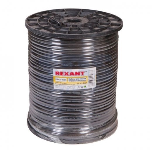Rexant КВК-П + 2х0.5 мм (200 м) - кабель видеонаблюдения. Для систем видеонаблюдения требуются особые, комбинированные кабели, сочетающие в себе коаксиальный провод для передачи видеосигналов и жилы питания, необходимые для энергоснабжения камеры и передачи сигналов управления. Кабель видеонаблюдения КВК-П-2х0,5мм2 незаменим для эксплуатации систем наблюдения как в помещении, так и за его пределами. Коаксиальный кабель в составе кабеля видеонаблюдения относится к типу RG-59, его центральный проводник представляет собой многожильный медный провод, по которому передается видеосигнал, а экран, изготовленный также из меди, защищает сигналы от помех. Медные жилы питания обладают хорошей гибкостью, площадь их сечения равна 0,5 мм2. Общий диаметр кабеля — 7мм. Коаксиальный кабель и провода питания заключены в единую оболочку из полиэтилена черного цвета. Полиэтилен защищает кабель от влаги, ультрафиолета и температурных перепадов. Кабель возможно прокладывать вне помещений.