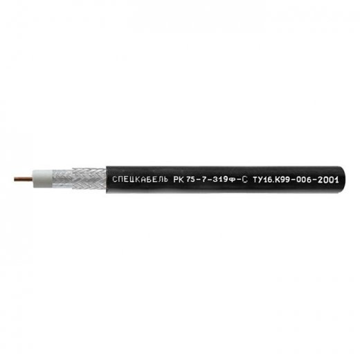 Спецкабель (РК 75) РК 75-7-319ф-C (200 м) - кабель радиочастотный, одиночной прокладки, для систем кабельного/спутникового телевидения и видеонаблюдения. Кабели коаксиальные радиочастотные предназначены для одиночной стационарной прокладки в сетях кабельного телевидения в качестве распределительных и субмагистральных кабелей. Используются с соединителями типа F, BNC, TNC. Эксплуатируются внутри и вне помещений при условии защиты от прямого воздействия солнечного излучения и атмосферных осадков.
