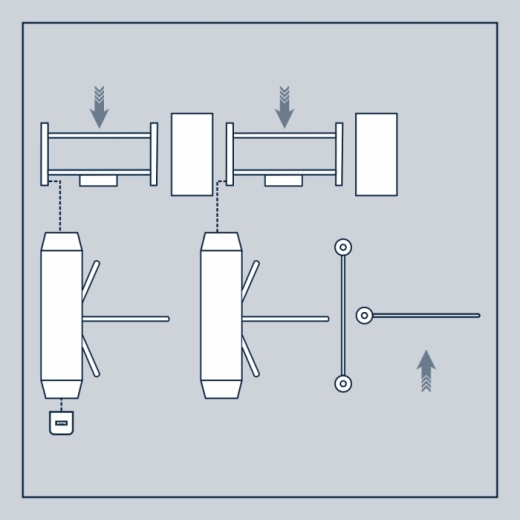 БАЗОВОЕ РЕШЕНИЕ, в котором объединены две важные функции – досмотр и контроль потока посетителей. Масштабируется в зависимости от размеров помещения.