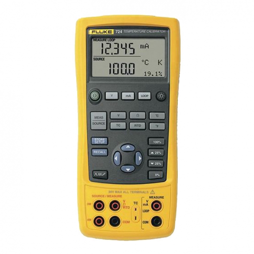 Fluke 724 - калибратор измерителей температуры, мощный и удобный прибор. Функции измерения и имитации сигнала обеспечивают проверку и калибровку практически любого прибора для измерения температуры.