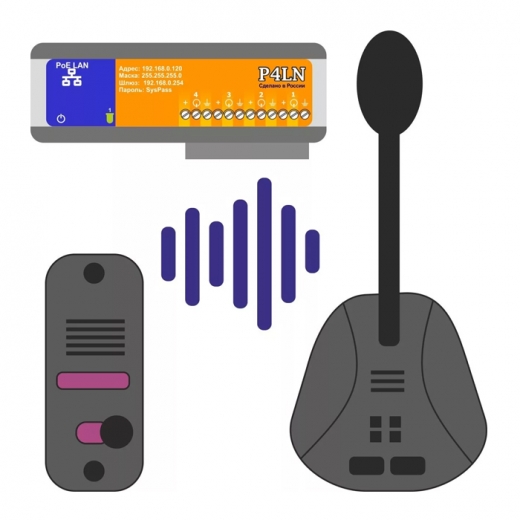 DD-205Г(Т) -HF/P4LN-1 - 4-х каналый IP передатчик звука по локальной сети ОСА P4LN +2 переговорных устройства DD-205Г(Т).