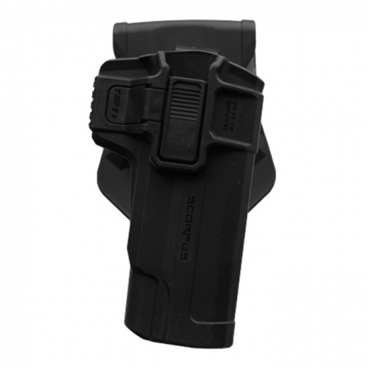 - Противоскользящий зажим обеспечивает плотное и надежное размещение оружия в кобуре