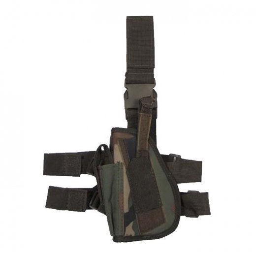 Кобура набедренная левая универсальная woodland - крепиться к ремню и 2 регулируемыми эластичными ремнями к бедру.