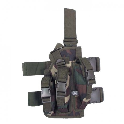 Кобура набедренная правая с 3 секциями woodland - крепиться к ремню и двумя регулируемыми эластичными ремнями к бедру.