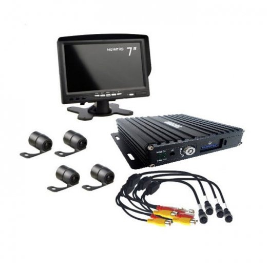 Комплект видеонаблюдения на 4 камеры NSCAR 402: 4х канальный регистратор, 4 камеры, 7″монитор, микрофон, провода подключения.