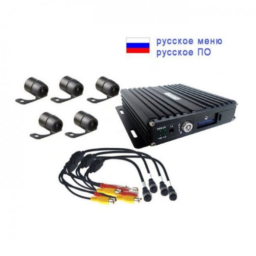 Комплект видеонаблюдения на 5 камер NSCAR 501: 4х канальный регистратор, квадратор, 5 камер, микрофон, провода подключения.
