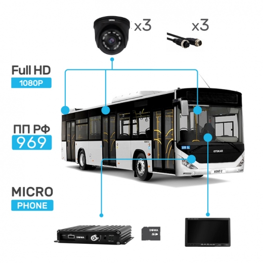 Готовый комплект видеонаблюдения на трехдверный автобус, сертифицированный по постановлению правительства РФ 969