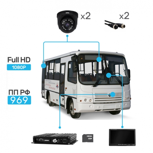 Готовый комплект видеонаблюдения на двухдверный автобус, сертифицированный по постановлению правительства РФ 969