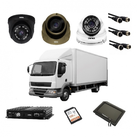 Готовый комплект видеонаблюдения для грузовиков (будка, тент, самосвал, бортовик) c системой виброзащиты и защиты от перепадов энергоснабжения. Состав: 3 камеры 1080P, комплект кабелей и разъемов, регистратор на 4 канала, SD карта 128 Gb, монитор 4".