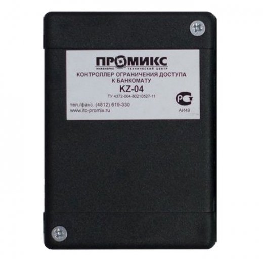 Промикс KZ-04 - контроллер ограничения доступа к банкомату. Предназначен для повышения безопасности клиентов при совершении операций и ограничения доступа в помещения банкомата посторонних лиц. Позволяет сократить накладные расходы на эксплуатацию помещения банкомата, а также повысить уровень комфорта обслуживания клиентов. Работает с картами "МИР"