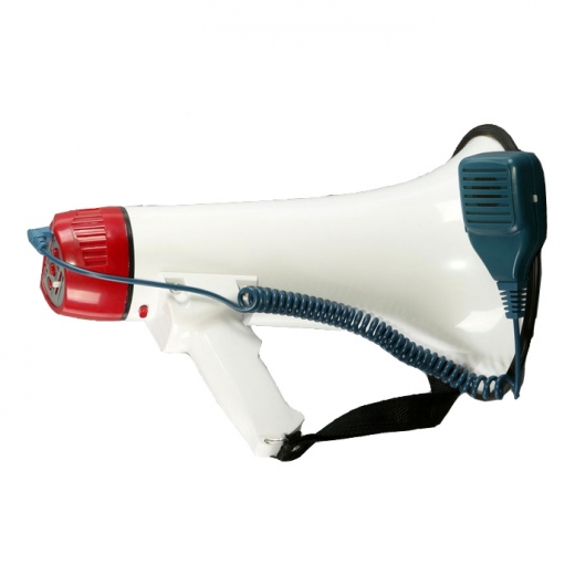 Ручной мегафон — мобильное устройство совмещающее в себе микрофон, усилитель и рупорный громкоговоритель. Кроме того, современные модели имеют дополнительные функции, такие как: воспроизведение записанных речевых сообщений, подача спецсигналов. Мегафон имеет встроенный микрофон, также к нему подключается входящий в комплект выносной микрофон. Он позволяет воспроизводить записанное сообщение длительностью до 10 сек, и спецсигнал «сирена».