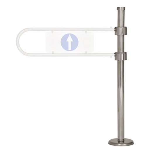 Калитка односторонняя, поворот дуги возможен против часовой стрелки при виде сверху; при попытке пройти в обратном направлении она представляет собой преграду. На вставке односторонней калитки с одной стороны изображена стрелка, с другой стороны - знак запрета. - Характеристики