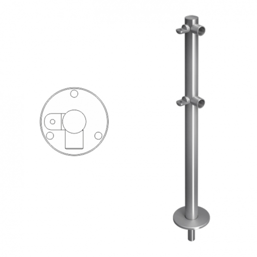 Стойка ограждения L-образная съемная, с 2-мя полупетлями под поворотную створку или секцию и 2 муфты справа, образуя угол 90°