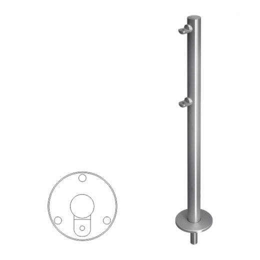 Стойка ограждения с 2-мя полупетлями под поворотную створку или секцию односторонняя
