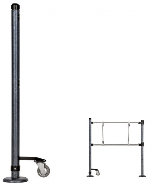 Ростов-Дон ОС2акп/2-1 - стойка фиксатора колесная с креплением к полу ограждения, двухуровневая односторонняя крашеная. С двумя муфтами для горизонтальных перемычек диаметром 25мм и дополнительным фундаментным фланцем.