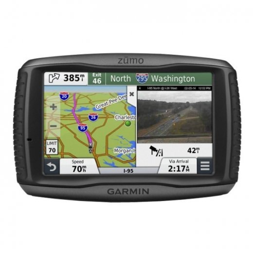 zumo 590 - мотонавигатор с сенсорным экраном 5 дюймов с двойной ориентацией, отличное качество изображения даже при солнечном свете, можно работать в перчатках