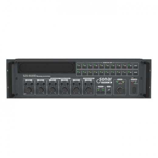 Sonar SZS-5020D - цифровой микшер-усилитель для системы оповещения о пожаре или музыкальной трансляции. 20 линий оповещения, селектор зон. Мощность усилителя 250 или 500 Ватт. Поддерживает 32 микрофонные консоли SRM-2000 с максимальным удалением 1200 метров.