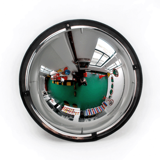 Применяется в магазинах розничной торговли, складах, парковках и на производствах. Для безопасности и контроля слепых зон. Метровое купольное зеркало обеспечивает обзорность 360 градусов. Крепится к потолку, либо подвешивается на цепочки.