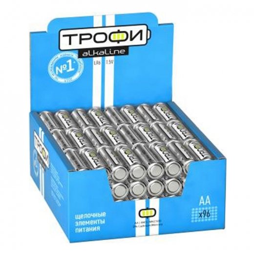 Трофи LR6-4S promo-box (96/384/18432) - экономичная серия щелочных батареек для питания устройств с равномерным и распределенным во времени потреблением энергии: пульты дистанционного управления, простейшие игрушки, светодиодные фонари и др. Классический блистер на 4 батарейки.