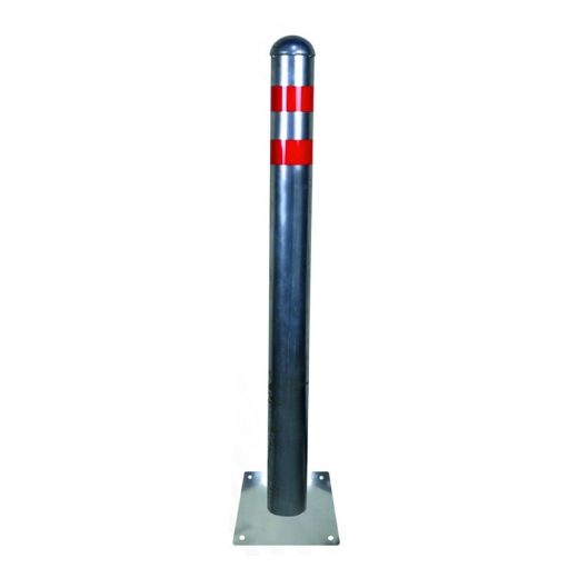 Анкерный столбик СМА-76.000-1 СБ выполнен из стальной трубы диаметром 76 мм и толщиной 1,5 мм. Сверху приварена металлическая полусфера, которая плотно прилегает к столбу и не допускает попадания осадков внутрь столбика. Покрытие — порошковая краска цвета Хром и две красные светоотражающие наклейки, которые позволяют заметить антипарковочный столбик даже в темное время суток. Покрытие столбика надежно защищает от осадков и реагентов, долгое время не допускает коррозию металла.Монтаж происходит на анкерные болты 10х125 в количестве 4 штук.