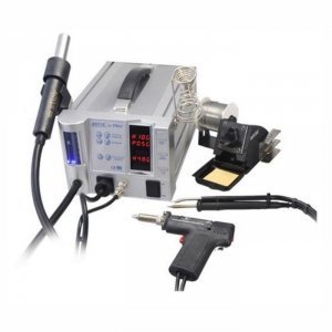 - Система совмещает функции термофена, паяльника и пистолета для распайки.