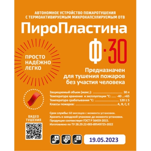 Автономная установка пожаротушения ПироПластина Ф-30