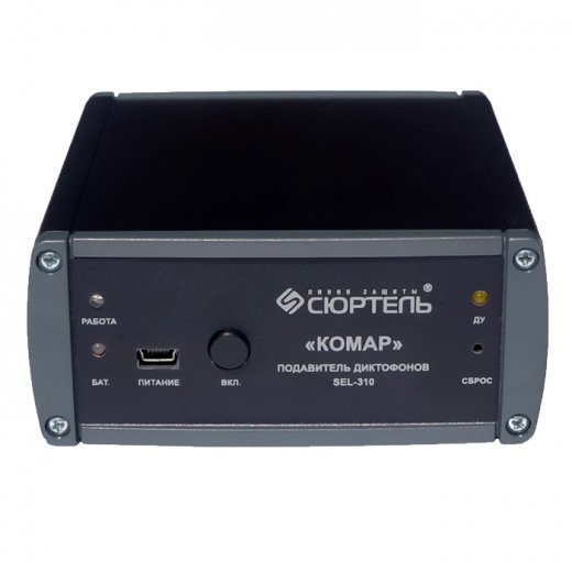 * Дальность подавления зависит от типа микрофона, диктофона или мобильного телефона и его расположения относительно самого подавителя диктофонов и микрофонов SEL-310 «Комар». На практике большинство диктофонов и микрофонов мобильных телефонов эффективно подавляются на расстоянии до 2 метров. Но встречаются отдельные модели, для которых это расстояние не превышает 0,5 м, а микрофоны некоторых электронных средств хорошо подавляются и на расстояниях до 10 м.