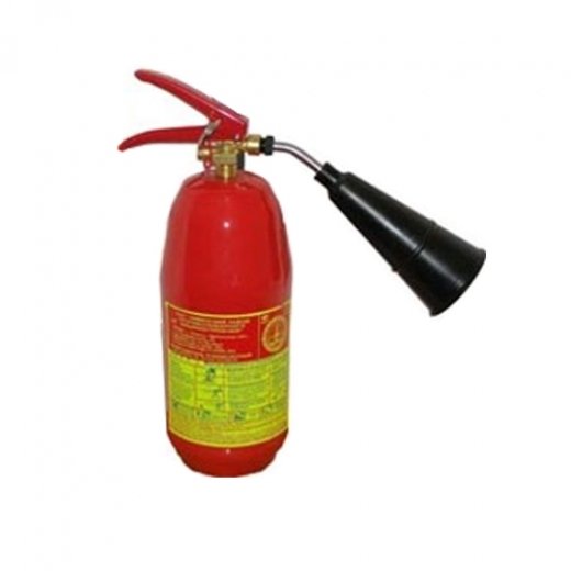Порошковый огнетушитель ОП-2, огнетушащая способность по тушению модельного очага по классу А = 0,7, по классу В= 21, по классу E= до 1200В.