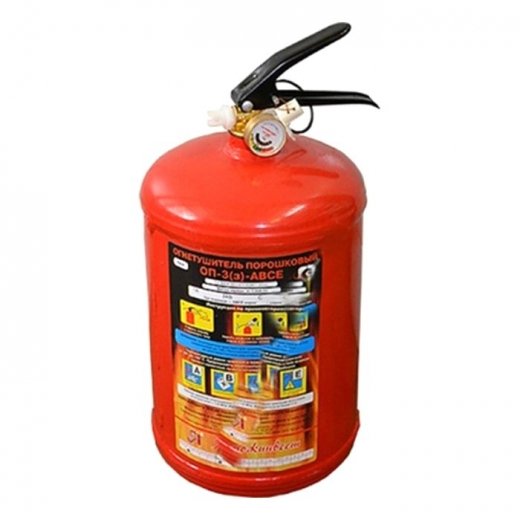ОП-3 (з) АBCE - порошковый огнетушитель с массой заряда 3,15 кг российского производства («Ярпожинвест», Ярославль). Применяется для тушения очагов классов: А - твёрдые горючие вещества, В - горючие жидкости, С - горючие газы, Е - электроустановки до 10 кВ. Условия эксплуатации: при температуре от -40 град С до +50 град С. Имеет все необходимые сертификаты для использования на территории Российской Федерации.