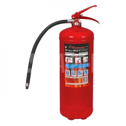 ОП-4 (з) АBCE - порошковый огнетушитель с массой заряда 4,2 кг российского производства («Ярпожинвест», Ярославль). Применяется для тушения очагов классов: А - твёрдые горючие вещества, В - горючие жидкости, С - горючие газы, Е - электроустановки до 10 кВ.