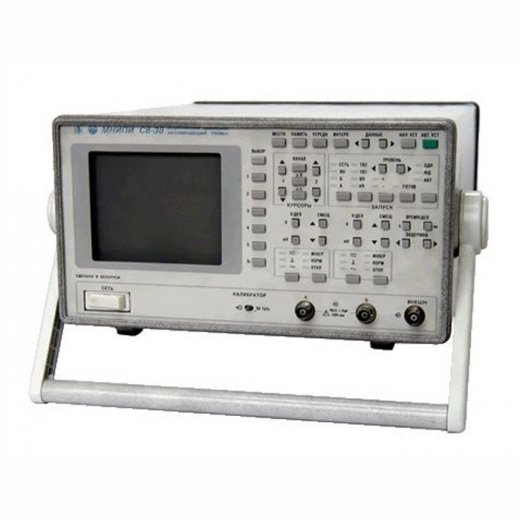 МНИПИ С8-38 - осциллограф двухканальный цифровой запоминающий, исследует сигналы в полосе частот до 100 МГц. Осциллограф регистрирует однократные сигналы с максимальной частотой выборки 100 Мвыб/сек на канал и периодические до 5 Гвыб/сек. Осуществляя цифровую обработку и запоминание сигналов, С8-38 значительно облегчает наблюдение переходных процессов, медленно меняющихся и одиночных событий. Широкие функциональные возможности включают: автопоиск периодических сигналов в диапазоне от 100 Гц до 90 МГц, хранение в памяти до 4х сигналов, отображение одновременно до 4х осциллограмм (2 сигнала в реальном времени и 2 сигнала, записанных в цифровую память), пред- и послезапуск, режим усреднения и накопления данных. Осциллограф обеспечивает автоматические измерения следующих параметров: амплитуда импульсов, размах сигнала, среднеквадратическое значение периодического сигнала, период, частота, длительность импульсов, время нарастания и спада импульсов. Передвижные маркеры позволяют измерить любой участок сложного сигнала по вертикали и горизонтали (дельта-измерения). Встроенная энергонезависимая память сохраняет режимы предыдущего сеанса работы, установленные до отключения прибора от сети питания. Позволяет работать с полным TV-сигналом любой формы.