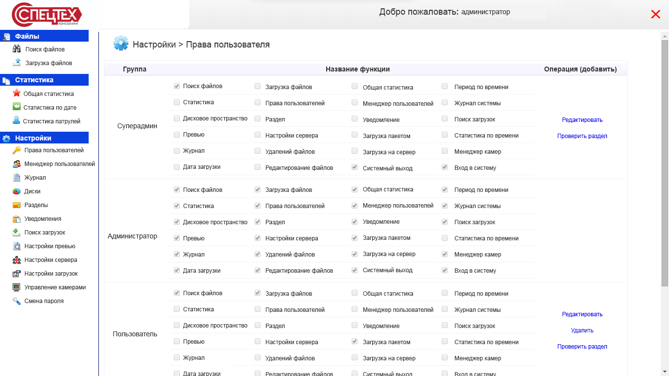 - Управление всеми данными, загруженными на сервер