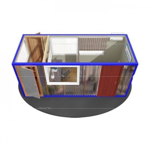 Пост охраны с проходной и ночевкой 5.85х2.45 Краус подойдет для размещения сотрудников охранных организаций, которые ведут круглосуточное наблюдение за территорией, а также для организации КПП.