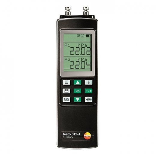 Testo 312-4 можно использовать не только для измерений, но и для вычислительных операций, например, для того чтобы установить внутренний объем труб. Измеритель давления обладает встроенной памятью до 25 тысяч измерений. Отличительной особенностью манометра давления является возможность питания не только от батареи, но и от сети. Аппарат легко подключается к персональному компьютеру посредствам поставляемого в комплекте кабеля. Измеритель давления Testo 312-4 обладает небольшим весом (600 г) и габаритами, поэтому очень удобен в применении.