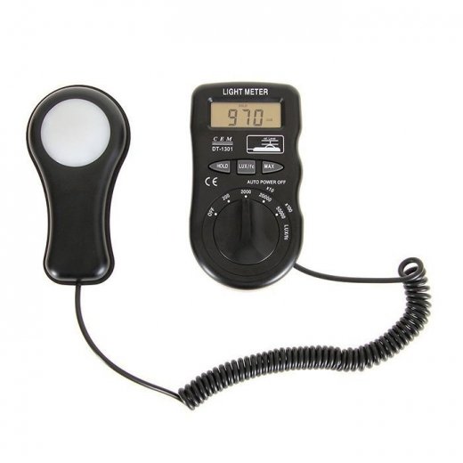 Люксметр DT-1301 имеет очень простое управление – вам нужно лишь выставить фотодетектор в поток света и посмотреть результат на жидкокристаллическом дисплее, оснащенном функцией автоматической подсветки и отображения уровня заряда батареи. Диапазон работы прибора составляет 0-50000 люкс/фут-кандел (1 фут-кандела=10,76 люкс). Имеется режим автоматического выбора диапазона измерений, режим удержания максимального значения и функция автоматического выключения питания через 15 минут бездействия.