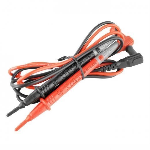 Mastech T3030C - щупы для тестера и токовых клещей. Щупы подсоединяются к гнездам мультиметра. Щупы для удобства имеют разные цвета; черный и красный. Как правило черный щуп подключается на общее гнездо, а красный на гнезда "+". Клеммы, провода и ручки щупов надежно изолированы от поражения электротоком. Для удобства работы металлические концы щупов заострены.