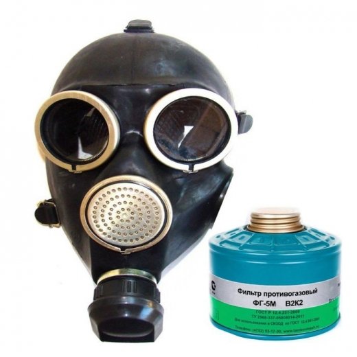 Противогаз ППФ-5М с фильтром ФГ-5М марки B2K2 маска ШМ-2012 - предназначен для защиты органов дыхания, зрения и лица рабочих различных отраслей промышленности и сельского хозяйства от воздействия паро- и газообразных вредных примесей, аэрозолей, присутствующих в воздухе рабочей зоны при объемной доле свободного кислорода в воздухе не менее 17%. Противогаз ППФ-5Б может эксплуатироваться в различных климатических зонах при температуре окружающей среды от - 40 до + 40ºС.