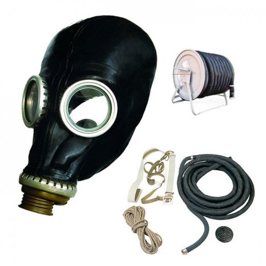 Противогаз ПШ-1Б (шланг 10м) маска ШМП-1 - противогаз изолирующий шланговый с воздухоподводящим шлангом длиной 10м (барабан на подставке с закрепленным шлангом)