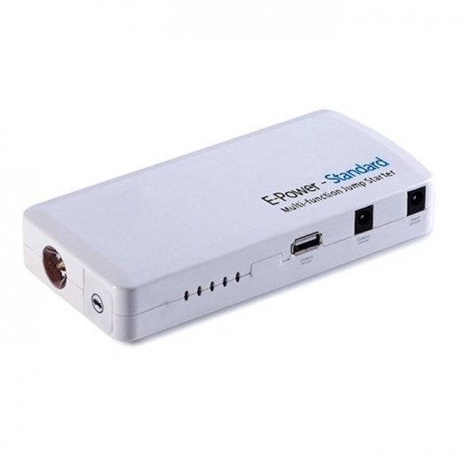 Пуско-зарядное устройство "E-POWER Standart" выполнено в компактном (160 х 75 х 28 мм) корпусе и весит всего 420 г, поэтому вы без проблем можете всюду брать его с собой или же возить в бардачке машины. Для запуска двигателя авто предусмотрены два силовых выхода на 12 В, расположенные на переднем торце, к которым подключаются комплектные зажимы-крокодилы. Пускового тока в 200-400 А хватит, чтобы запустить моторы большинства легковых автомобилей.