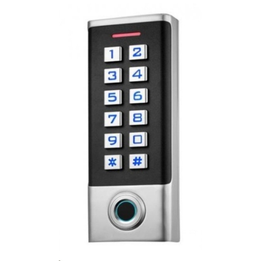 Кодонаборная панель с биометрическим считывателем отпечатков пальцев и считывателем карт EM-Marin, память 10 000 карт и 600 отпечатков, подключение дополнительного считывателя по интерфейсу Weigand 26, корпус - металл+пластик, пылевлагозащищенный, DC 12-24 В, IP68, -40...+60 °С, 152х60х24 мм
