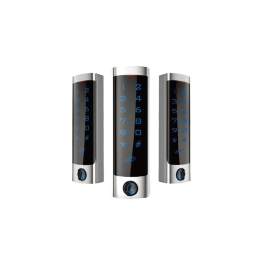 Автономный контроллер со встроенными считывателем EM-Marine и клавиатурой touch screen, кнопка звонка, вых. интерфейс Wiegand, память 2000 карт/паролей, 1 реле, U-коммут. 12 В, I-коммут. 3 А, U-пит. 12 В, I-потр. 60 мА, IP65, t-раб. -45...+60°С, габ.размеры 155х45х20 мм