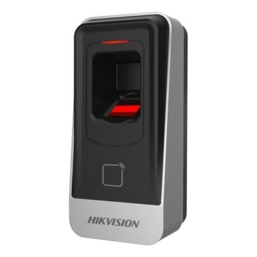 Считыватель отпечатков пальцев и Mifare карт Частота считывания 13.56МГц; хранилище: 5000 отпечатков; поддержка протокола RS485; DC12В±10%; 12Вт; -40 °C...+70°C; IP65; размер 62×132×44мм; пластик. Работает только с серией контроллеров DS-K2601/02/04!